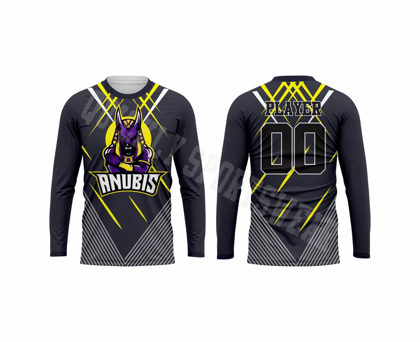 Custom sublimated crew neck long sleeve jersey. With 100% polyester dry-fit fabric