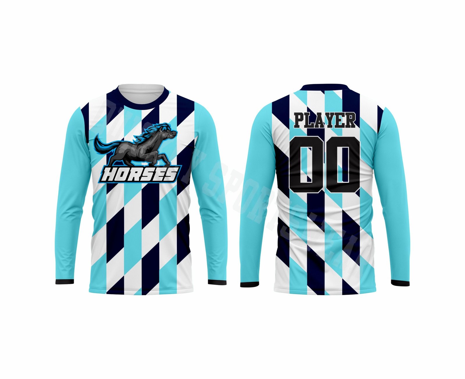 Custom sublimated crew neck long sleeve jersey. With 100% polyester dry-fit fabric