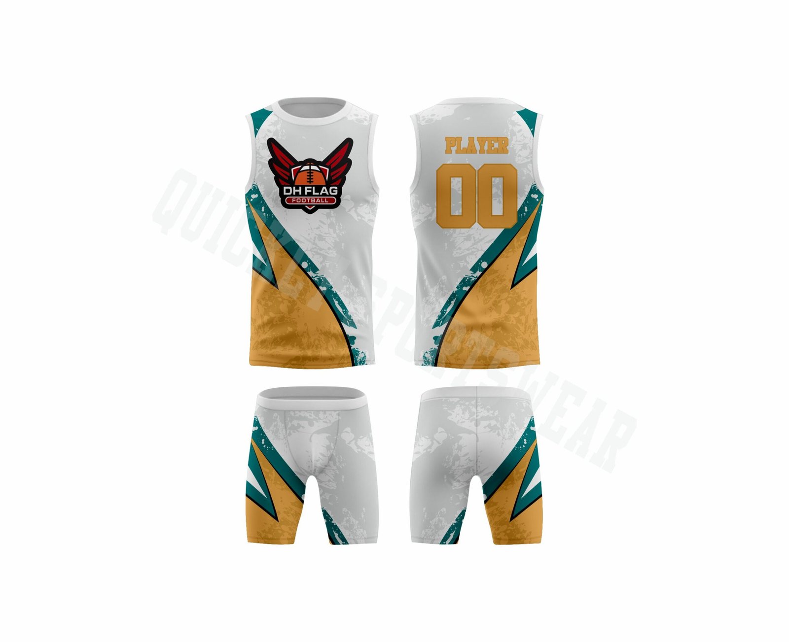 Custom sublimated flag football uniform. With 100% polyester dry-fit fabric