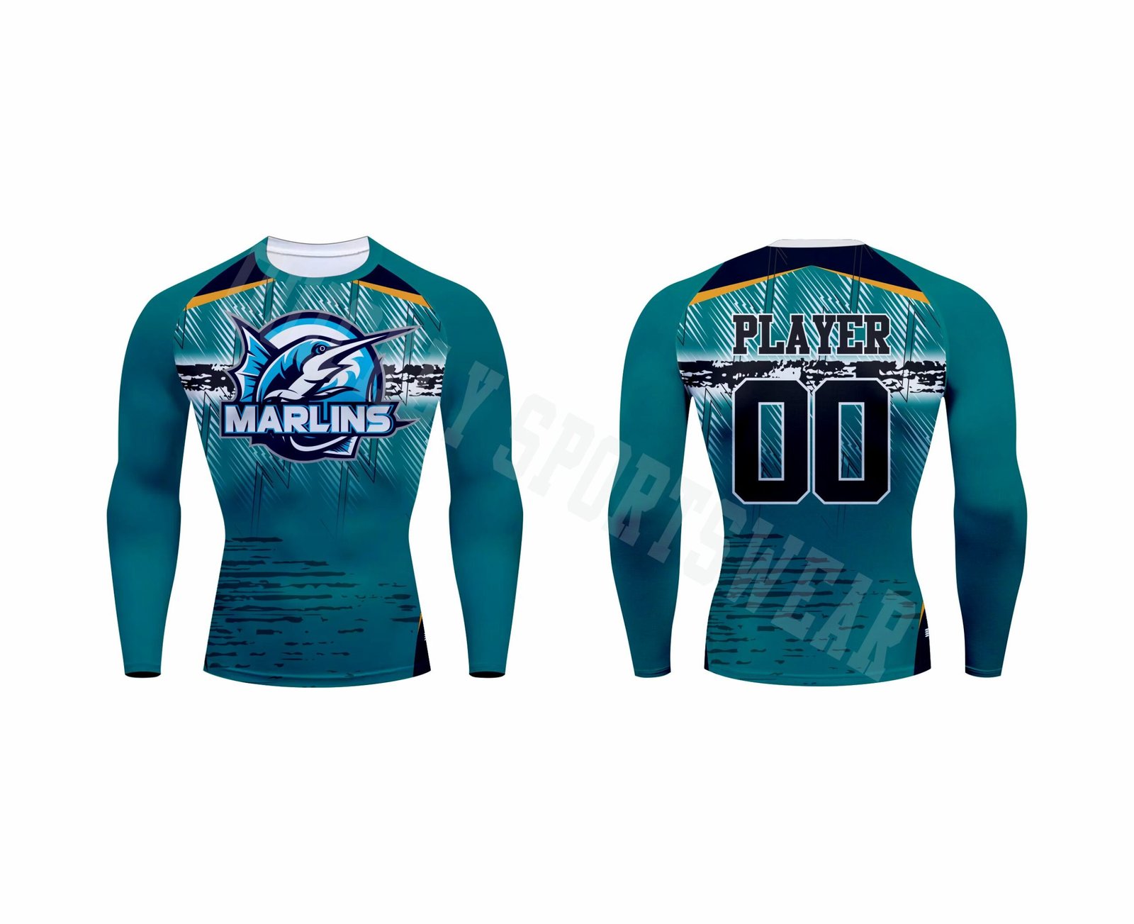 Custom sublimated long sleeve compression shirt. With 100% polyester dry-fit fabric