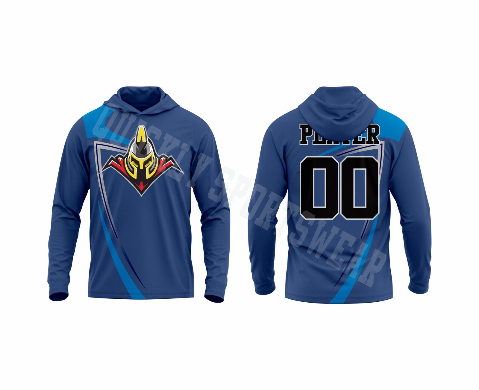 Custom sublimated long sleeve shooting shirt. With 100% polyester dry-fit fabric