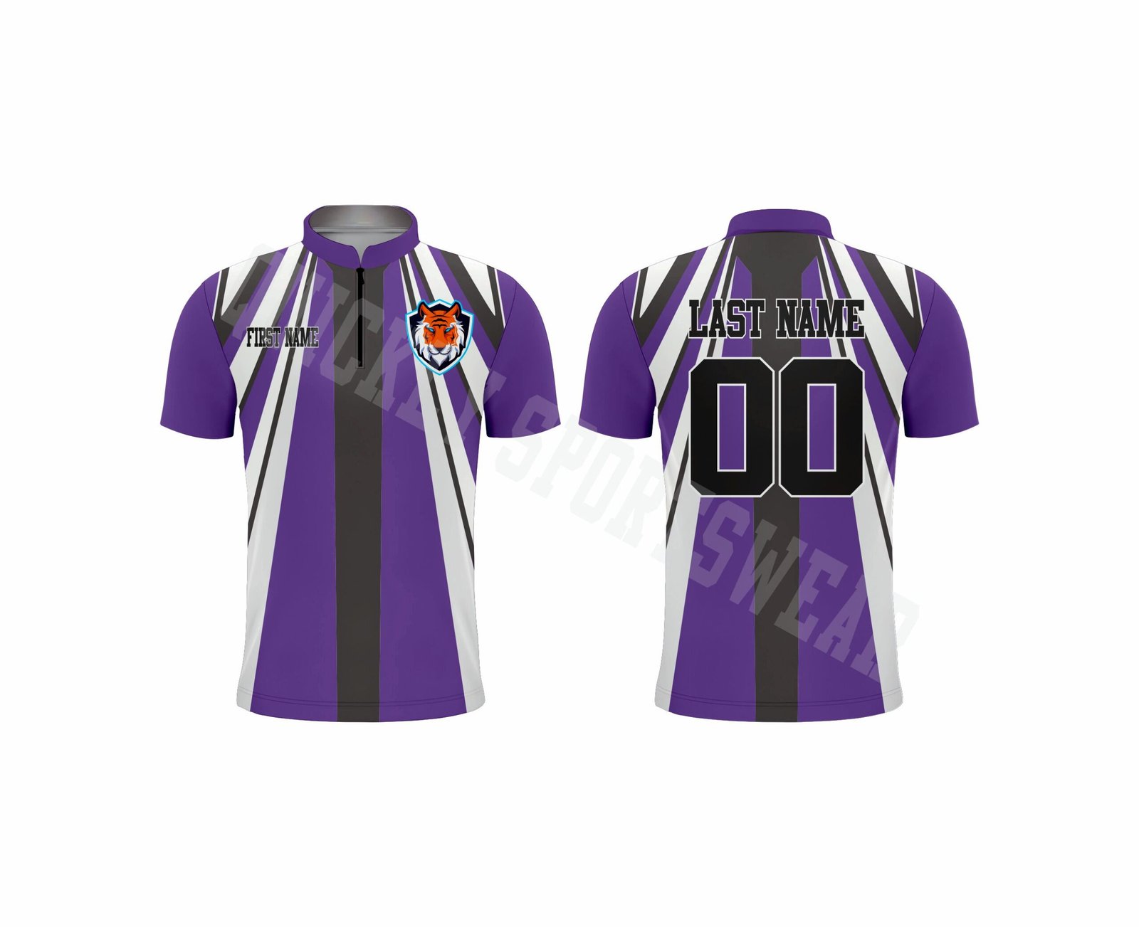 Custom sublimated short sleeve 1/4 zip pullover jersey. With 100% polyester dry-fit fabric