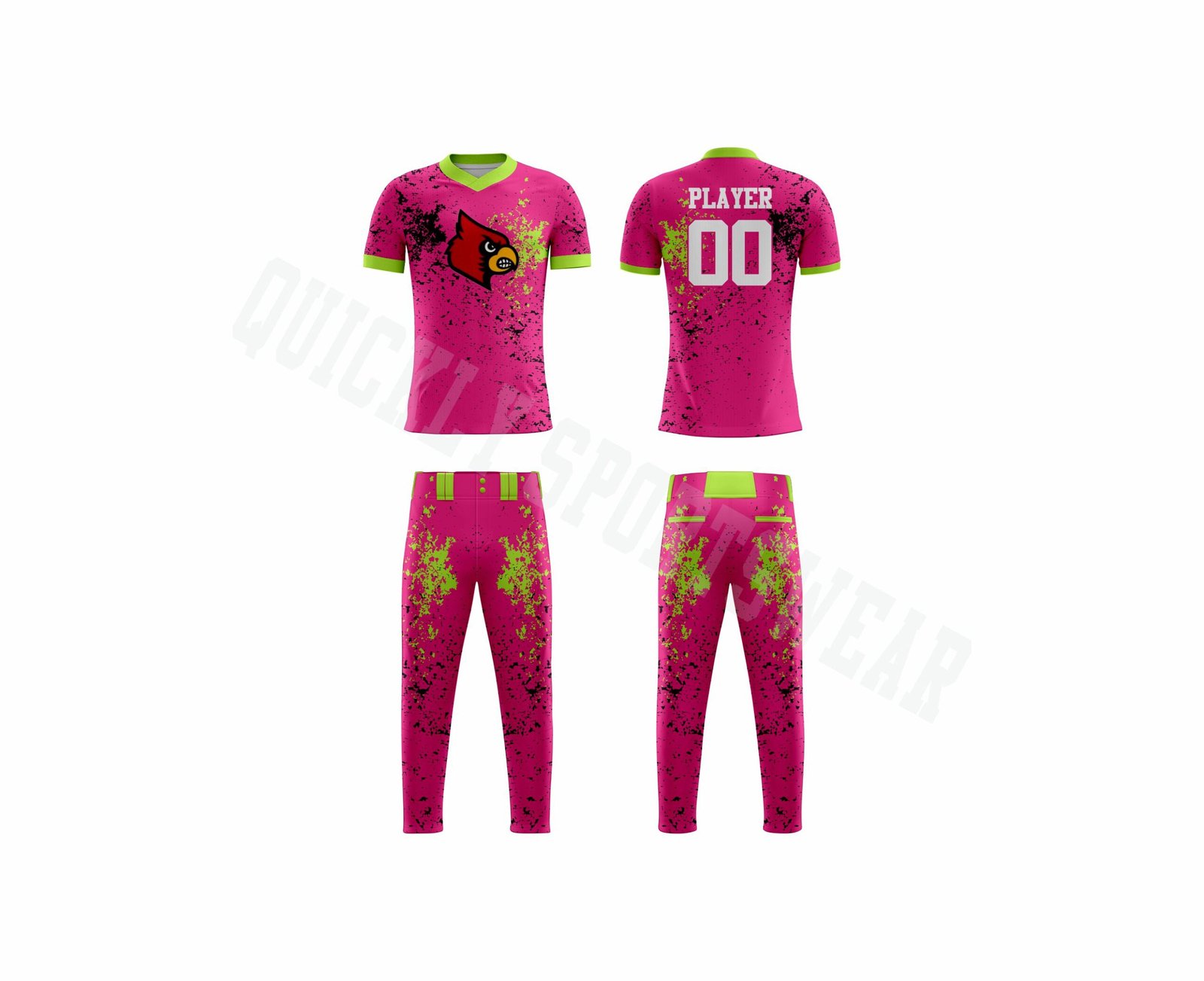 Custom sublimated V-neck softball uniform. With 100% polyester dry-fit fabric